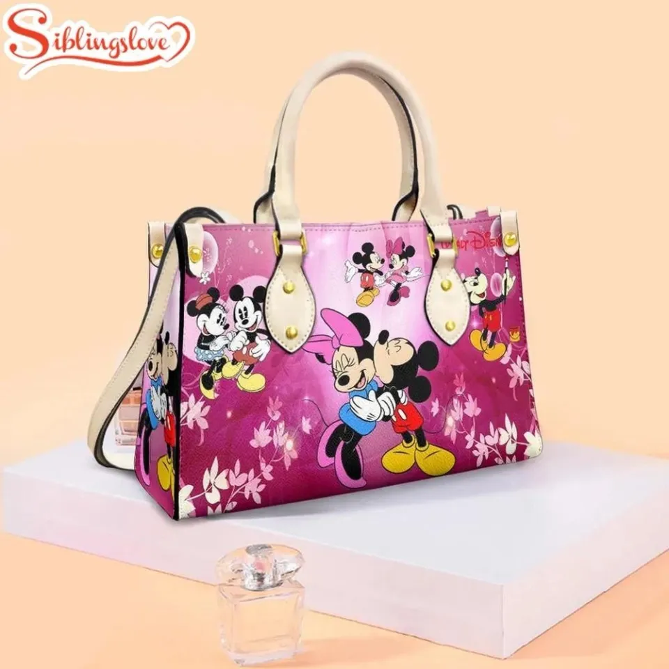 Own fascinating Mickey And Minnie Disney Love Pattern Leather Handbag or see more Leather Bags products now from Printblur shop to enjoy your shopping time!