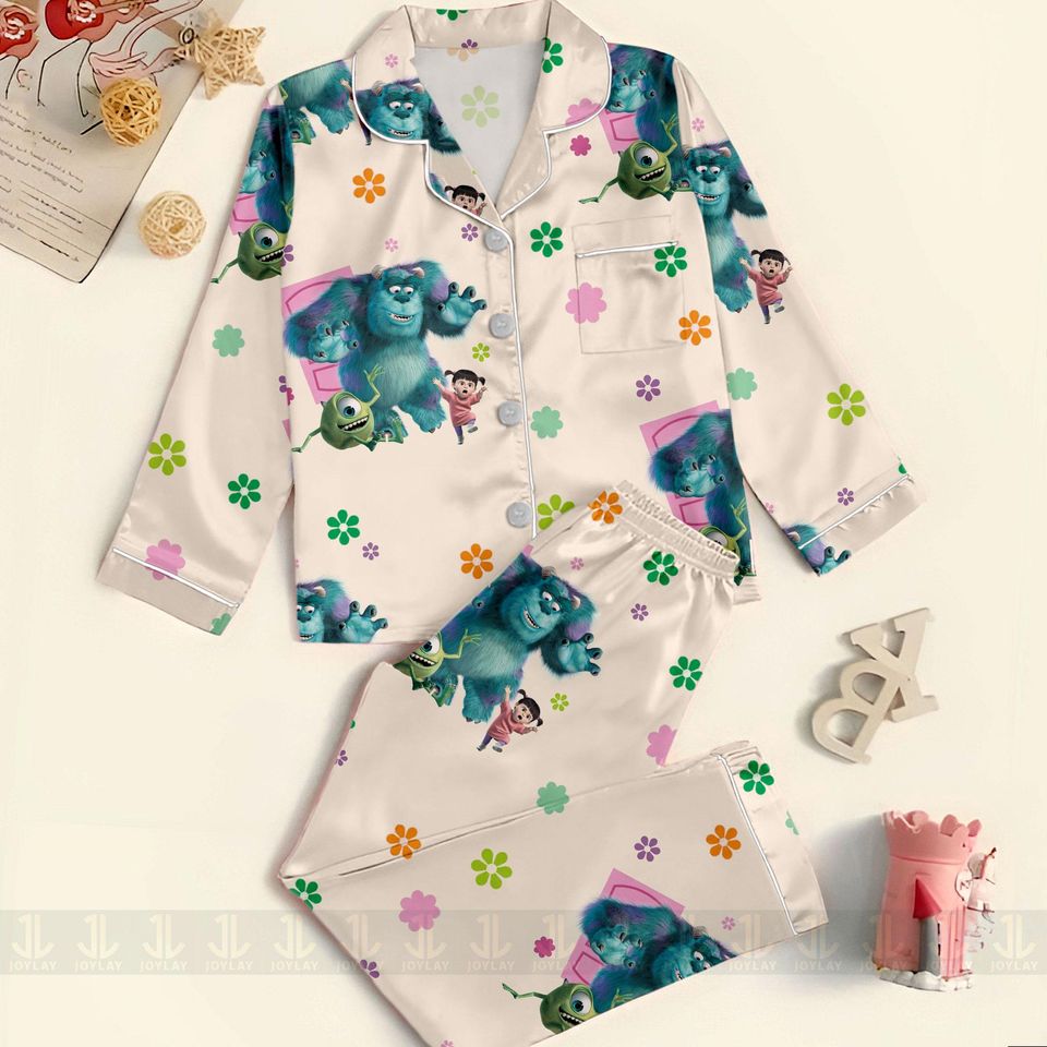The item hot trend you're looking at is Monster Mike James Sullivan Unisex Satin Pajamas Set, Spooky Season Pajamas For Kids belong theme Adult Pajamas Sets at Printblur