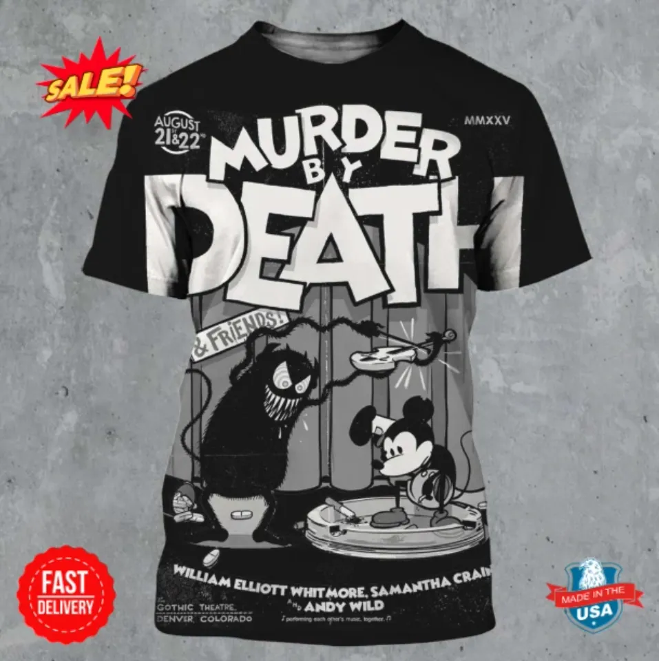 Buy eye-catching Murder By Death Denver Colorado 2025 On August 21 And 22 Retro Mickey 3D Tee or see more 3D T Shirts products at Printblur shop now to explore many surprises from our shop!