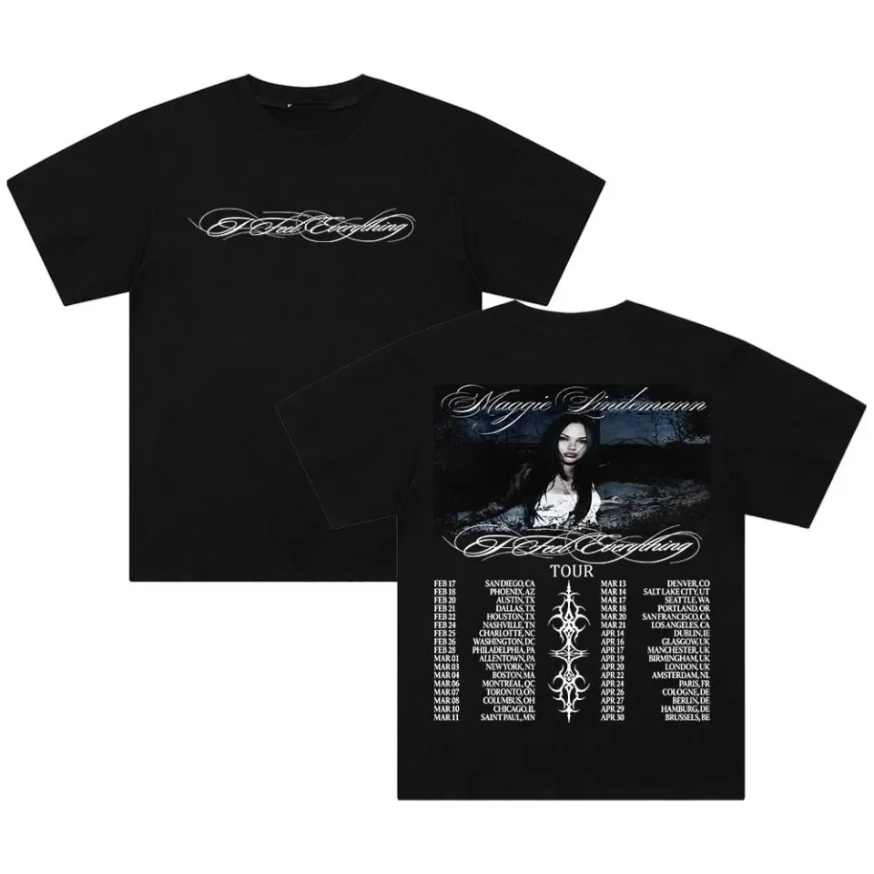 The item hot trend you're looking at is New!! Maggie Lindemann I Feel Everything Tour 2026 T-shirt For Men Black belong theme Double Sided T-Shirts at Printblur