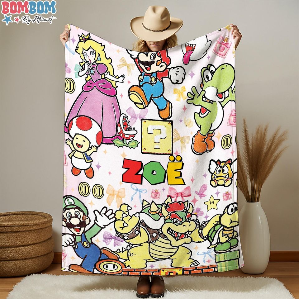 Shop for attractive Personalized Coquette Bows Super Mario Blanket, Watercolor Blanket, Mario Luigi Princess Peach Blanket or see more Fleece Blankets products on https://printblur.com right now!