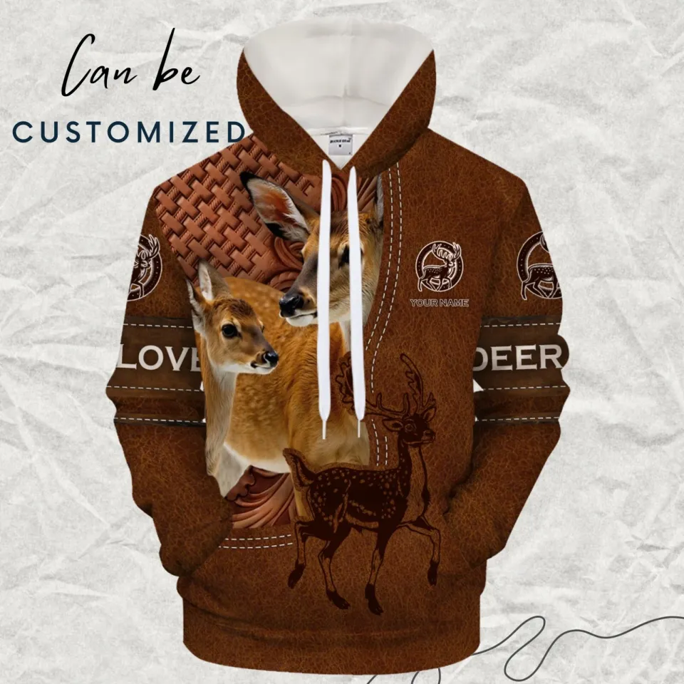 Own fascinating Personalized Deer Lovers 3D Hoodie, Brown Leather Hunting Hoodie for Wildlife or see more 3D Hoodies products now from Printblur shop to enjoy your shopping time!