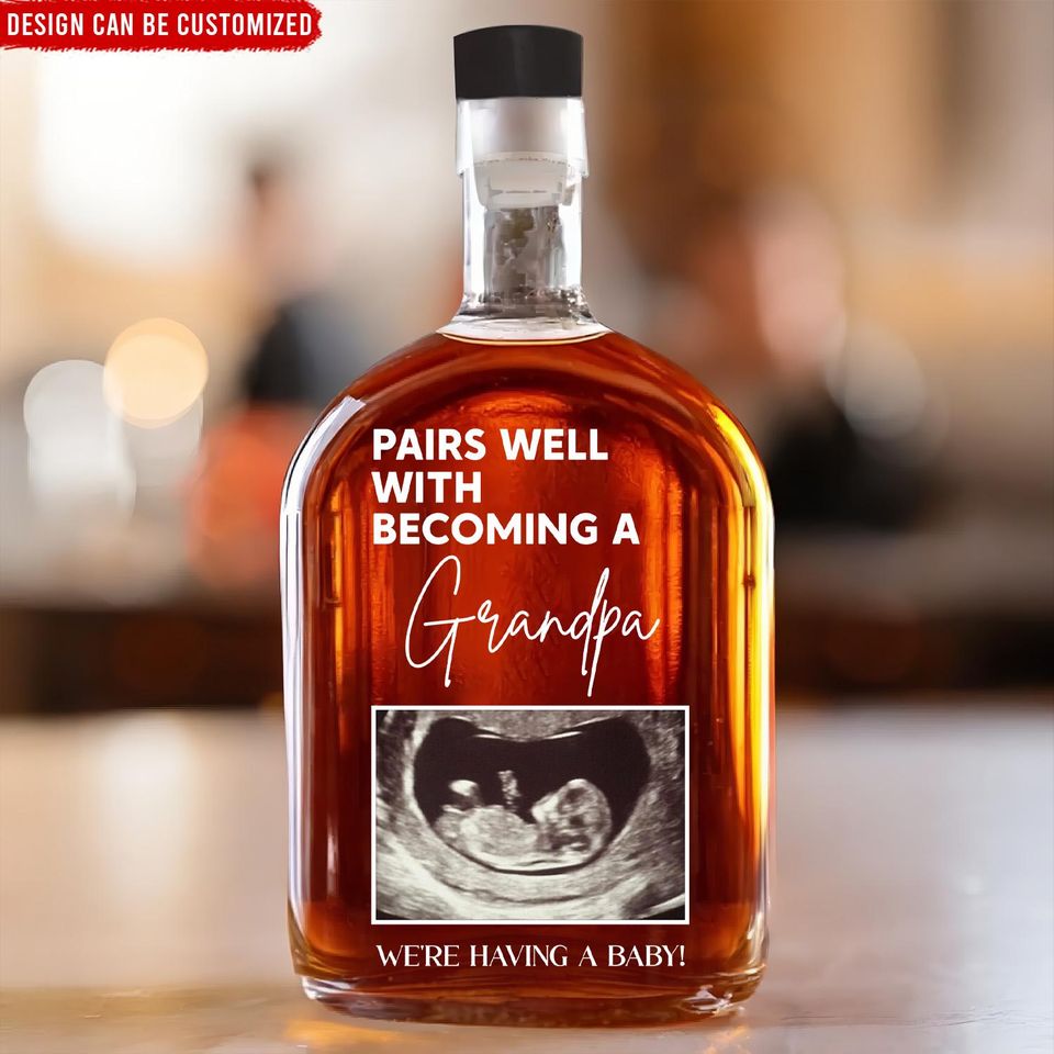 Buy eye-catching Personalized Grandpa Whiskey Bottle - Baby Announcement Gift for Dad and Him or see more Whiskey Bottles products at Printblur shop now to explore many surprises from our shop!