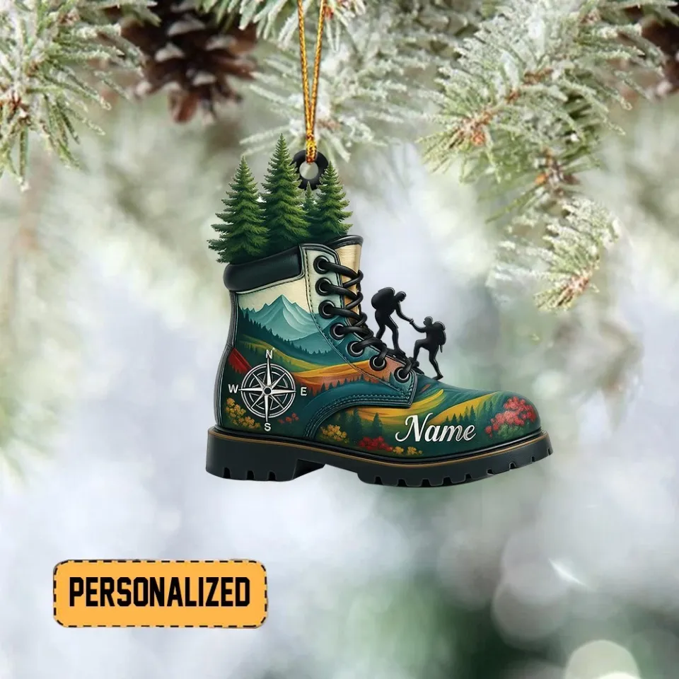 Personalized Hiking Boots Christmas Ornament, Camper Adventure Ornament Xmas Gift