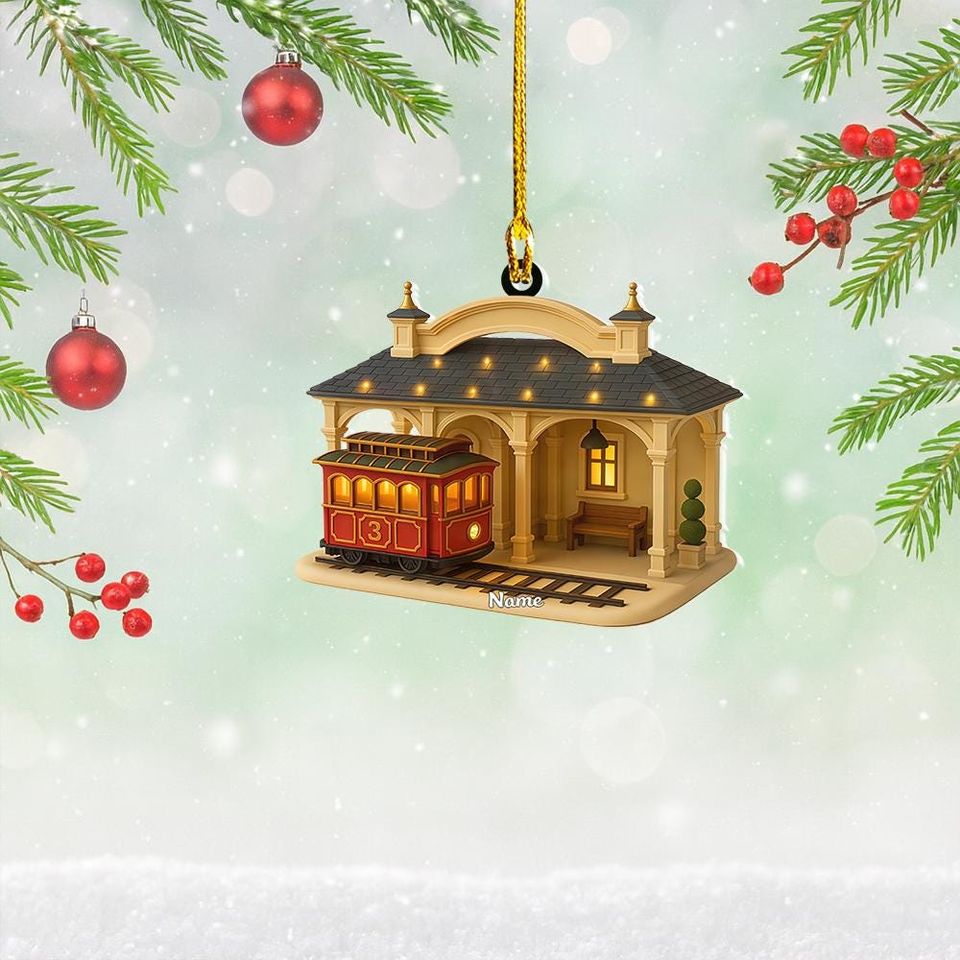 You are shopping for a stunning and trendy product Personalized Train Station Christmas Ornament, Trolley Depot Keepsake Decor, Locomotive Railway Ornament, Railroader Lovers Gift For belong theme Acrylic Ornaments at Printblur