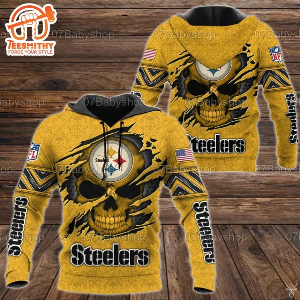 Own fascinating Pittsburgh Steeler Football Skull 3D Hoodie or see more 3D Hoodies products now from Printblur shop to enjoy your shopping time!