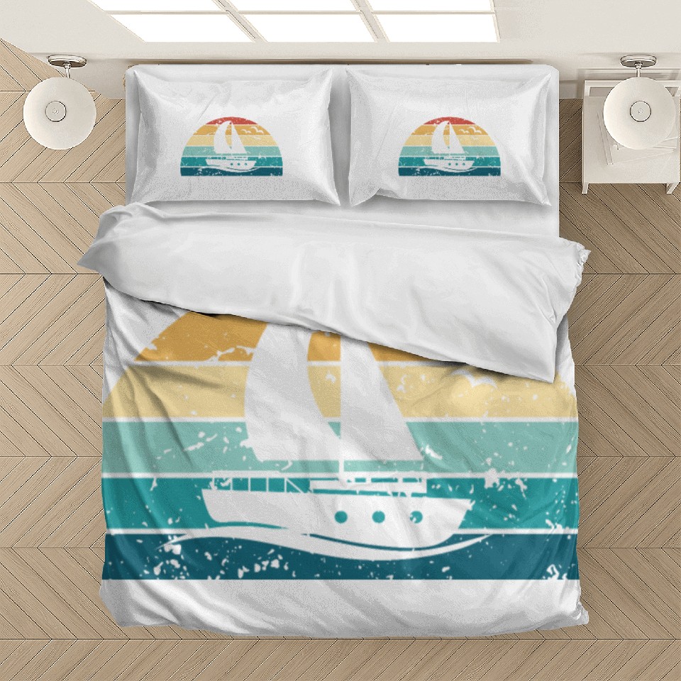 You're looking at the eye-catching product Retro Boating Sunset Vintage boat Sunrise Bedding Sets For WHITE belong theme Bedding Sets at Printblur
