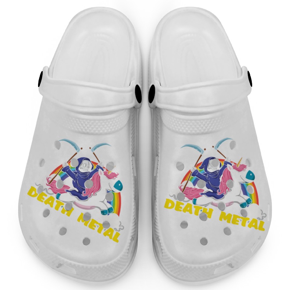 Shop for attractive Skeleton Unicorn Rainbow Metal Music Lover Clogs or see more Clogs products on https://printblur.com right now!