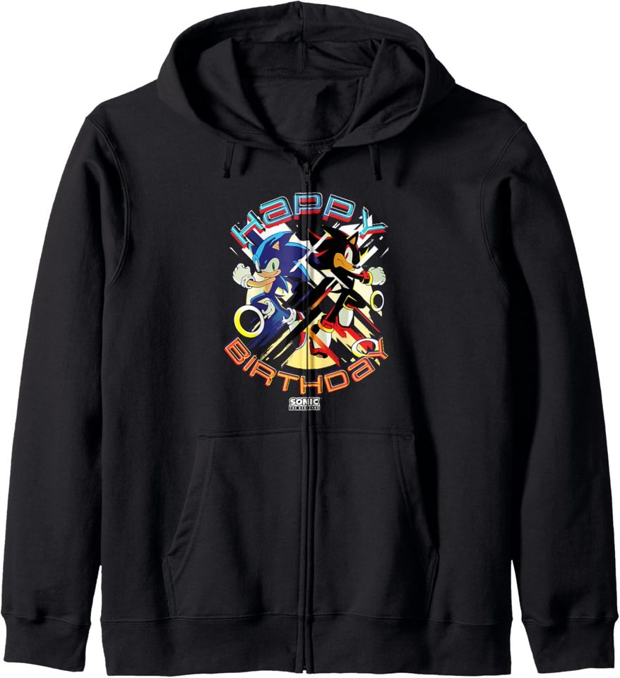 You're looking at the eye-catching product Sonic The Hedgehog Happy Birthday Sonic Shadow Chest Poster Zip Hoodie For Youth Black belong theme Zip Hoodies at Printblur