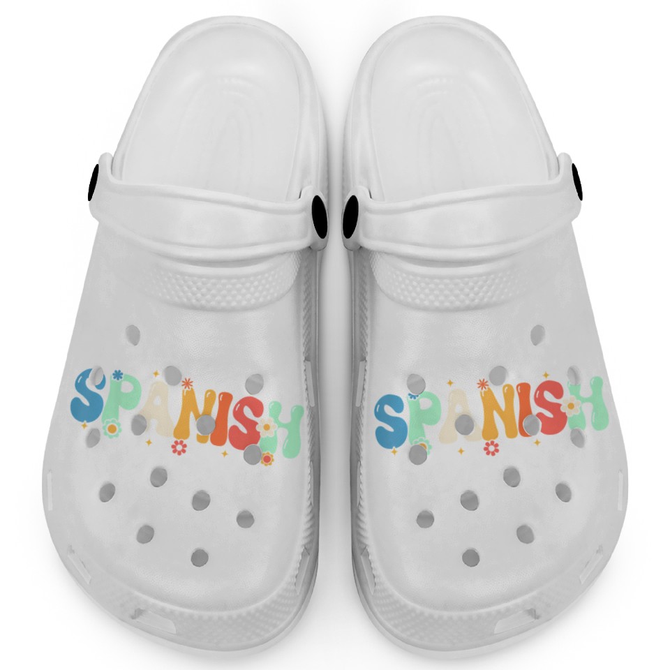 You are viewing one of the trendiest products Spanish Teacher Spanish Crew Back To School Clogs For Kids WHITE belong theme Clogs at Printblur