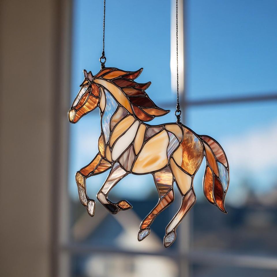 You are viewing an exclusive and elegant product Stained Glass Horse Suncatcher Window Hanging Farm Animal Decor Equestrian Gift For belong theme Suncatcher Ornaments at Printblur