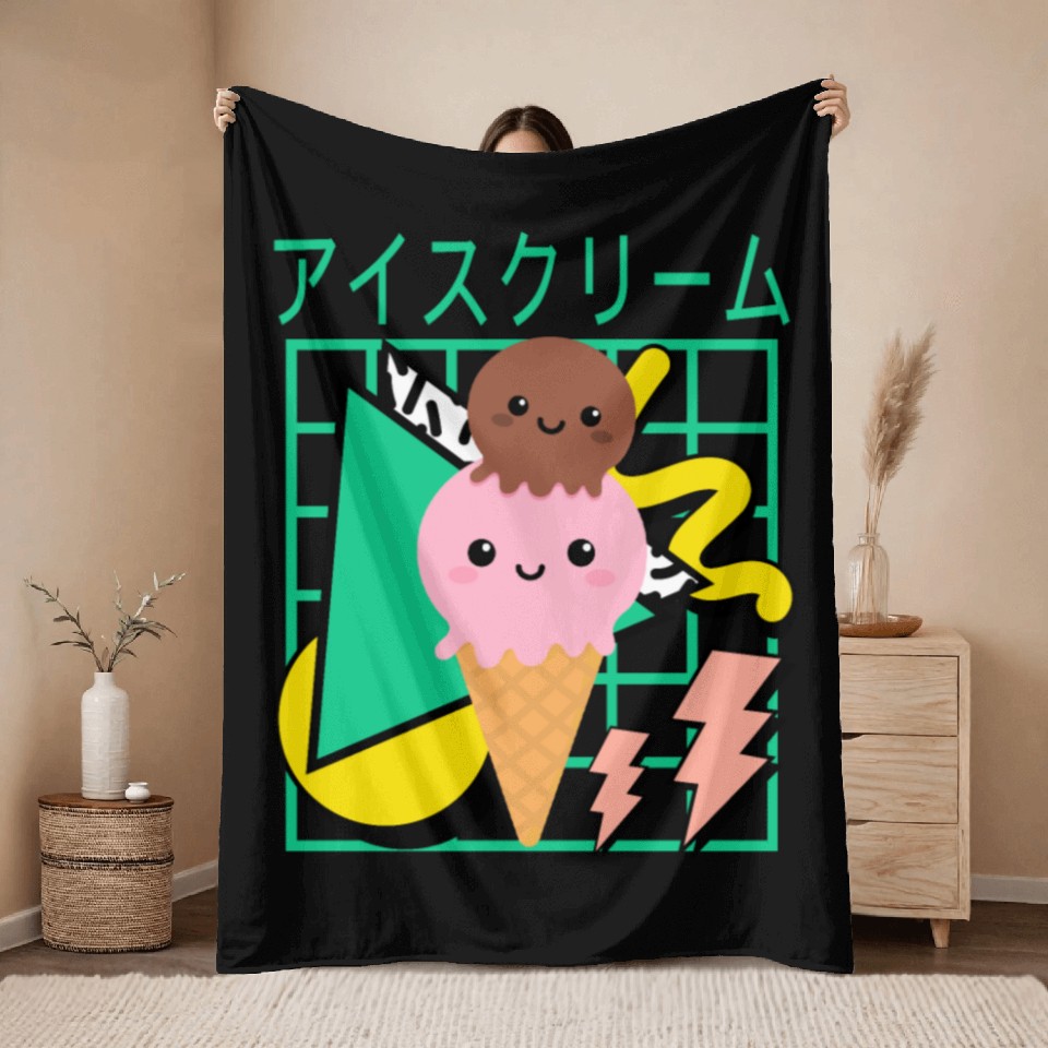 You are shopping for a stunning and trendy product The 90s Japanese Kawaii Ice Cream Throw Blankets For Black belong theme Throw Blankets at Printblur