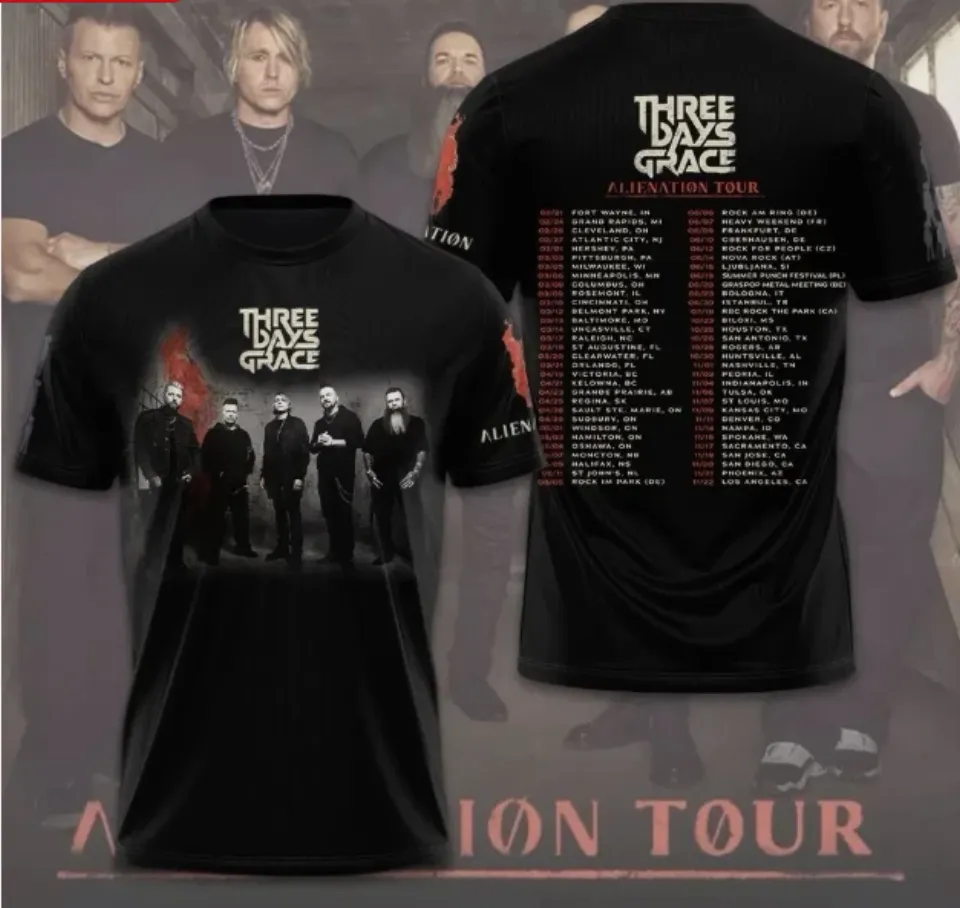 Buy eye-catching Three Days Grace Alienation Tour 2026 3D T-Shirt or see more 3D T Shirts products at Printblur shop now to explore many surprises from our shop!