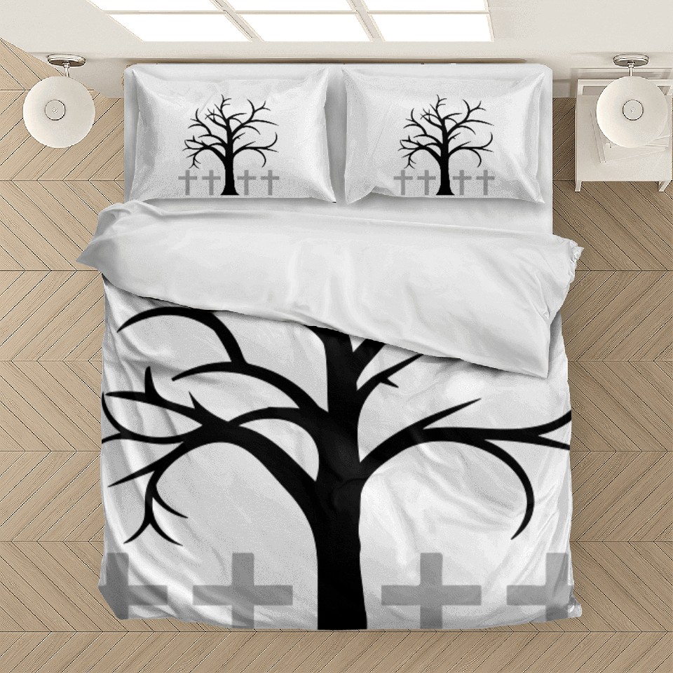 Buy eye-catching Tree Bald Winter Autumn Crosses Halloween Cemetery Bedding Sets or see more Bedding Sets products at Printblur shop now to explore many surprises from our shop!
