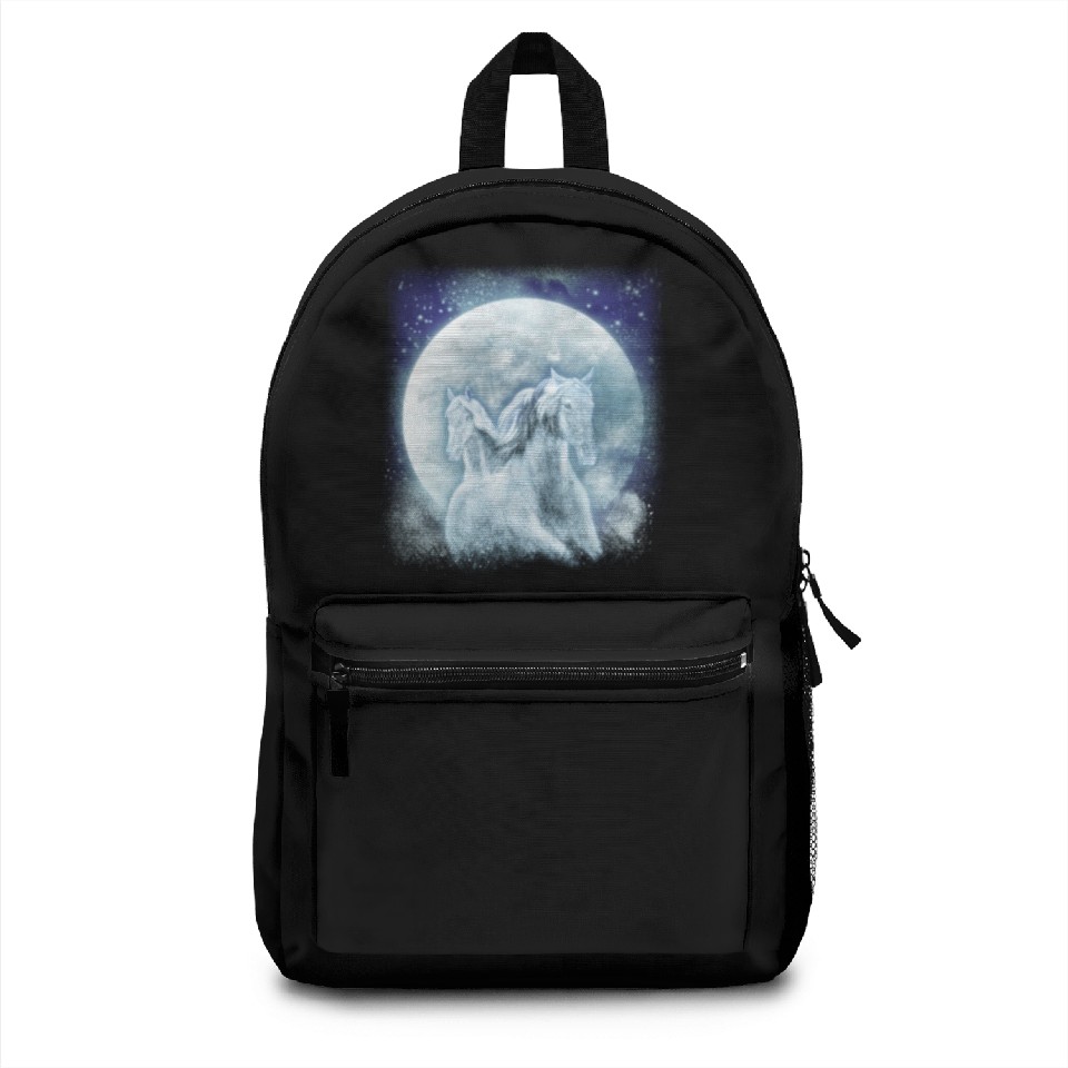 You are viewing an exclusive and elegant product Two White Horses In The Moonlight Horse Backpacks For Black belong theme Backpacks at Printblur