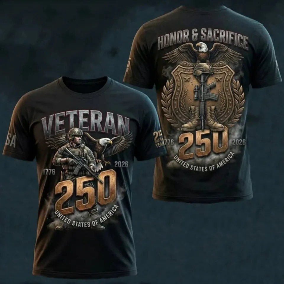 Shop for impressive Veteran USA 250 Years, Honor and Sacrifice All Over Shirt or see more 3D T Shirts products right now on Printblur to enjoy your happiness!
