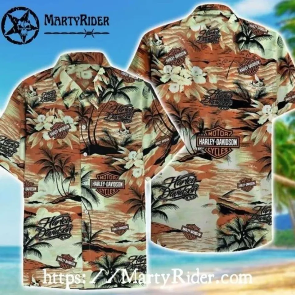 Own fascinating Vintage Desert Palm Harley Motor Racing Davidsonn Hawaiian Shirt Red Tan or see more Hawaiians products now from Printblur shop to enjoy your shopping time!