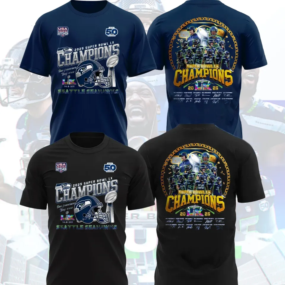 Own fascinating We Are Seattle Seahawk Super B.owl LX Champions, Seahawks Signatures Fan Look or see more Double Sided T-Shirts products now from Printblur shop to enjoy your shopping time!