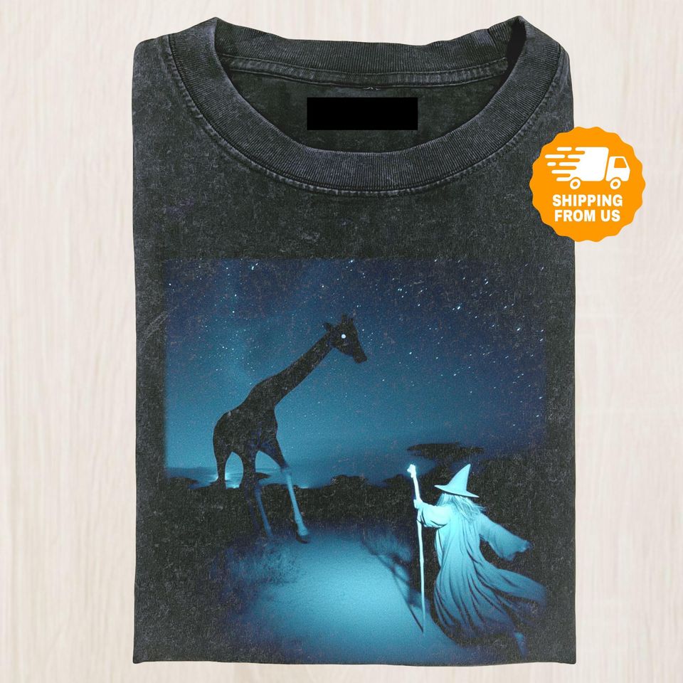 Wizard Meets Giraffe Shirt, Surreal Fantasy Graphic Tee, Magical Starry Night Meme Shirt, Whimsical Wizardcore Gift