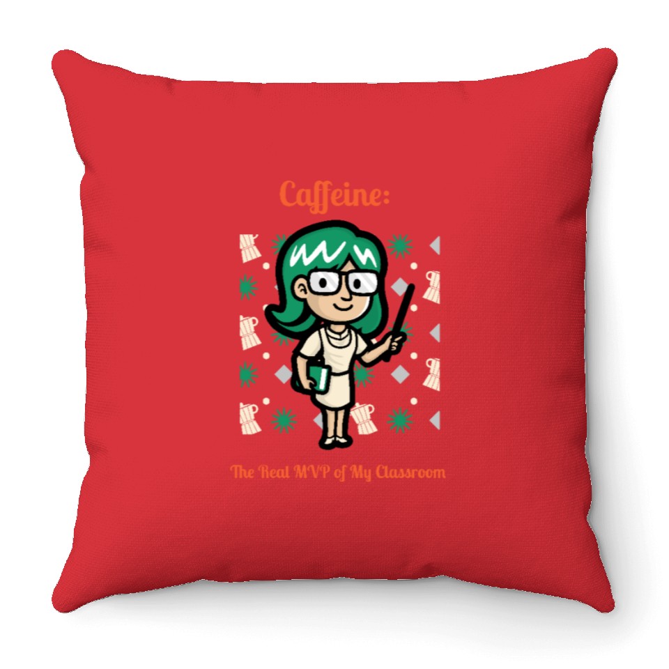 Shop for attractive Caffeine: The Real MVP of My Classroom Throw Pillows or see more Throw Pillows products on https://printblur.com right now!