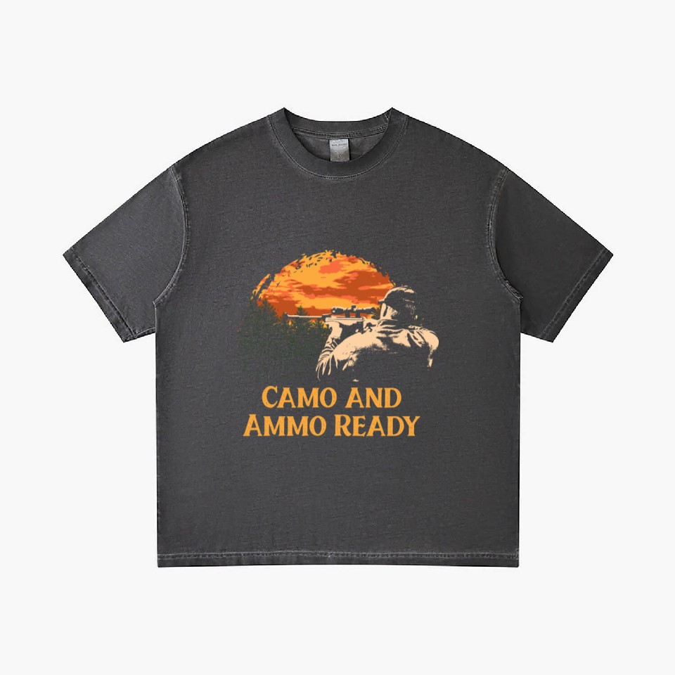 You're looking at the eye-catching product Camo and Ammo Ready Hunting Shotgun Hunter Shootin Gradient T Shirts For Men Washed Black belong theme Gradient T-Shirts at Printblur