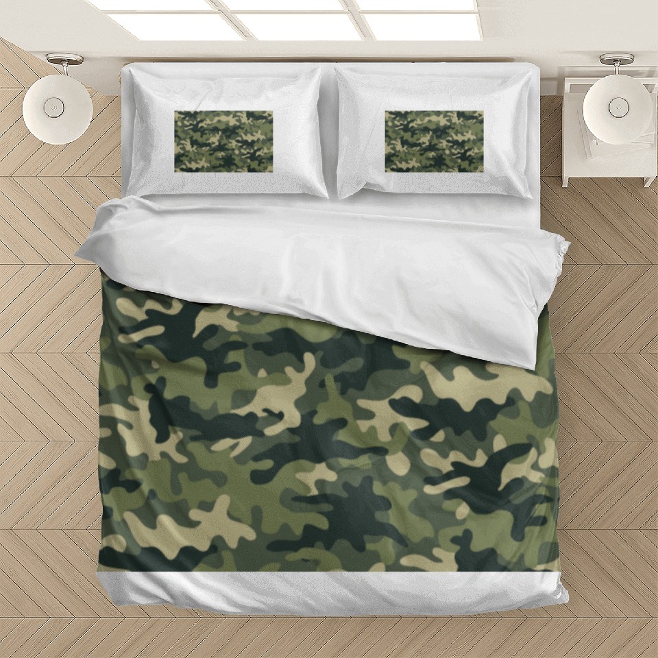 The product unique design you searched for is Camouflage pattern green Bedding Sets For WHITE belong theme Bedding Sets at Printblur