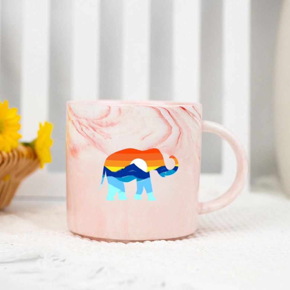 You are viewing an exclusive and elegant product Camping Hiking Retro Mountains Outdoors Elephant Marble Mugs For Pink belong theme Marble Mugs at Printblur