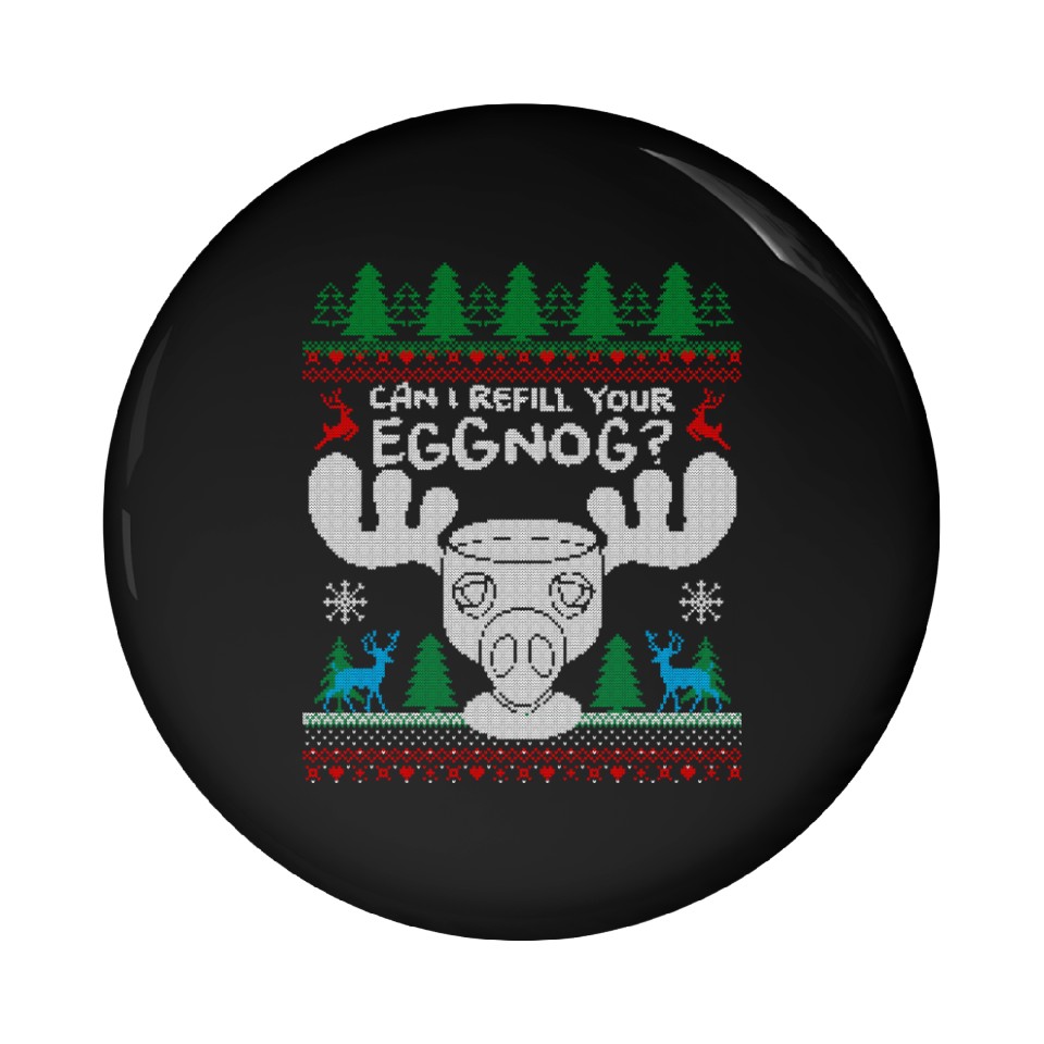Can I Refill your Eggnog? Ugly Christmas Themed Pin Buttons