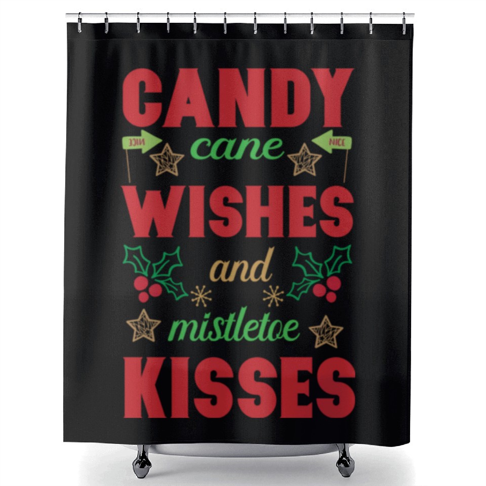 You are viewing one of the trendiest products Candy cane wishes and mistletoe kisses Shower Curtains For Black belong theme Shower Curtains at Printblur
