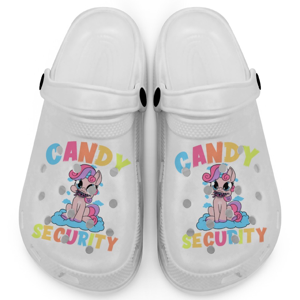 You're looking at the eye-catching product Candy Security Funny Easy Unicorn Halloween Costum Clogs For Kids WHITE belong theme Clogs at Printblur