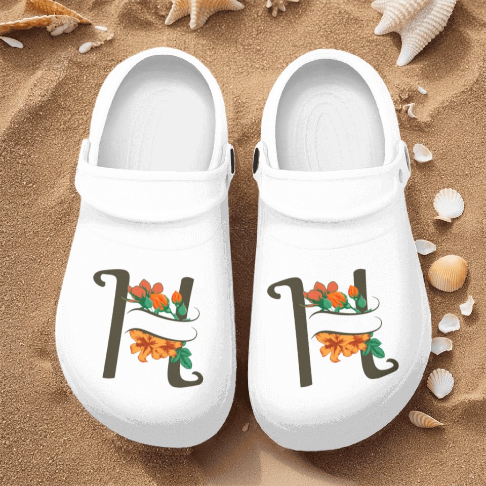 Shop for attractive Capital letter H monogram with roses and lily Nurse Clogs or see more Nurse Clogs products on https://printblur.com right now!