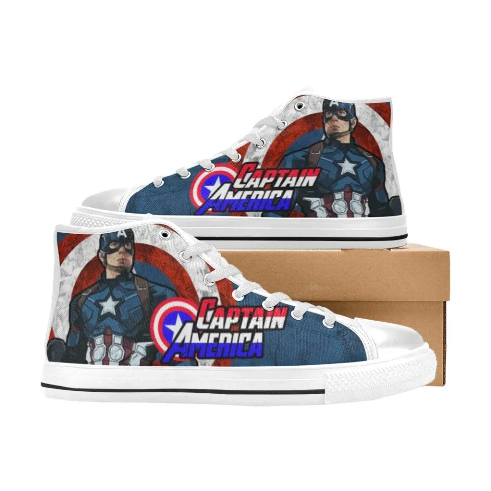 You are seeing a unique and impressive product Captain America High Top Sneakers For Women WHITE belong theme Men's High Top Sneakers at Printblur