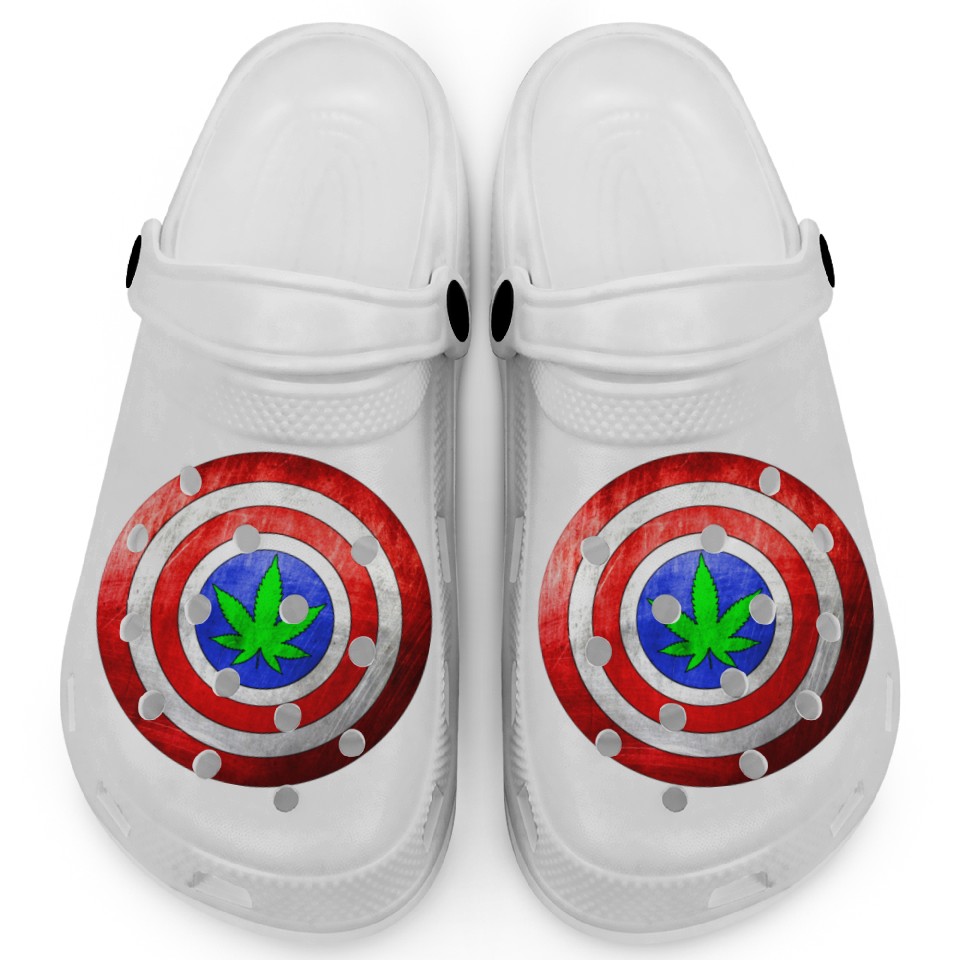 Shop for impressive Captain Cannabis Shield Red White Blue and Green Clogs or see more Clogs products right now on Printblur to enjoy your happiness!