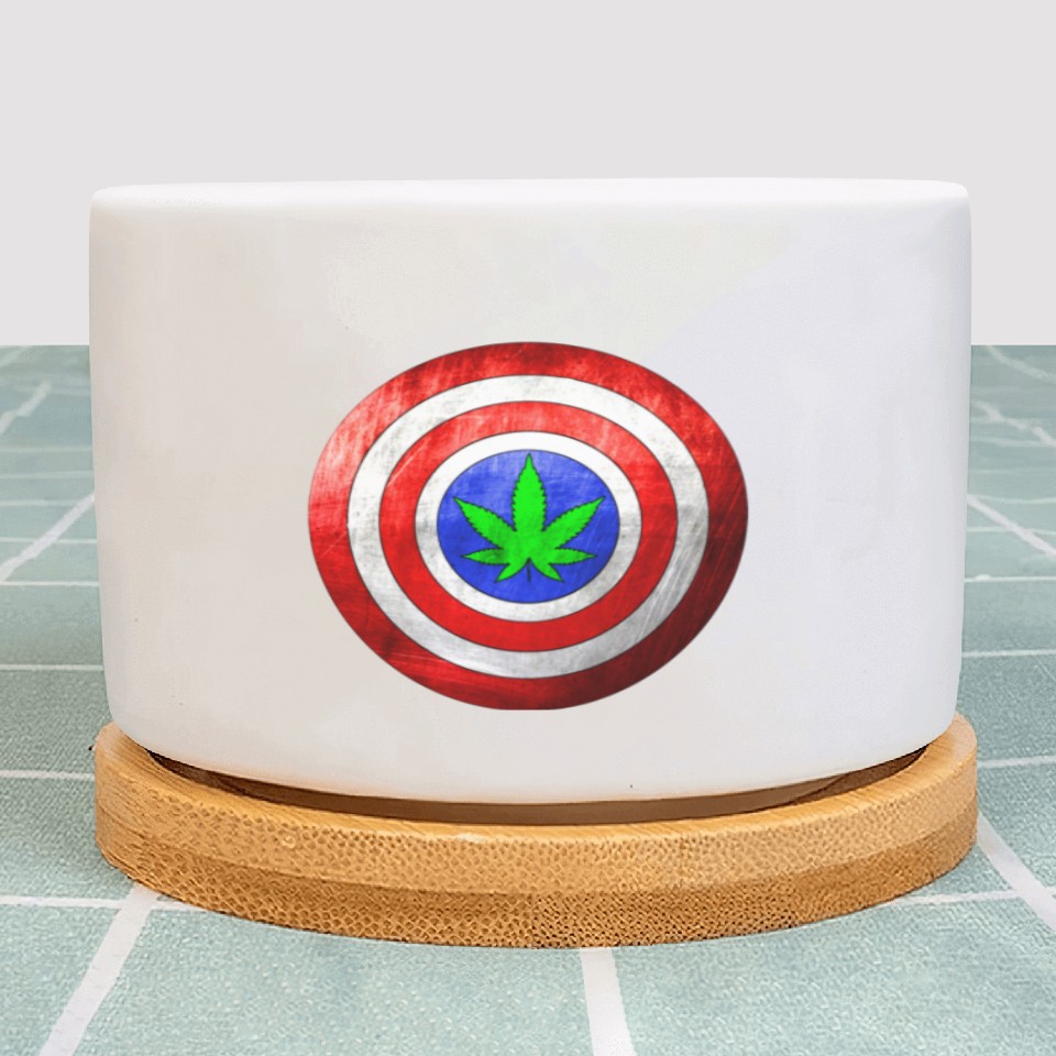 Buy eye-catching Captain Cannabis Shield Red White Blue and Green Plant Pots or see more Plant Pots products at Printblur shop now to explore many surprises from our shop!