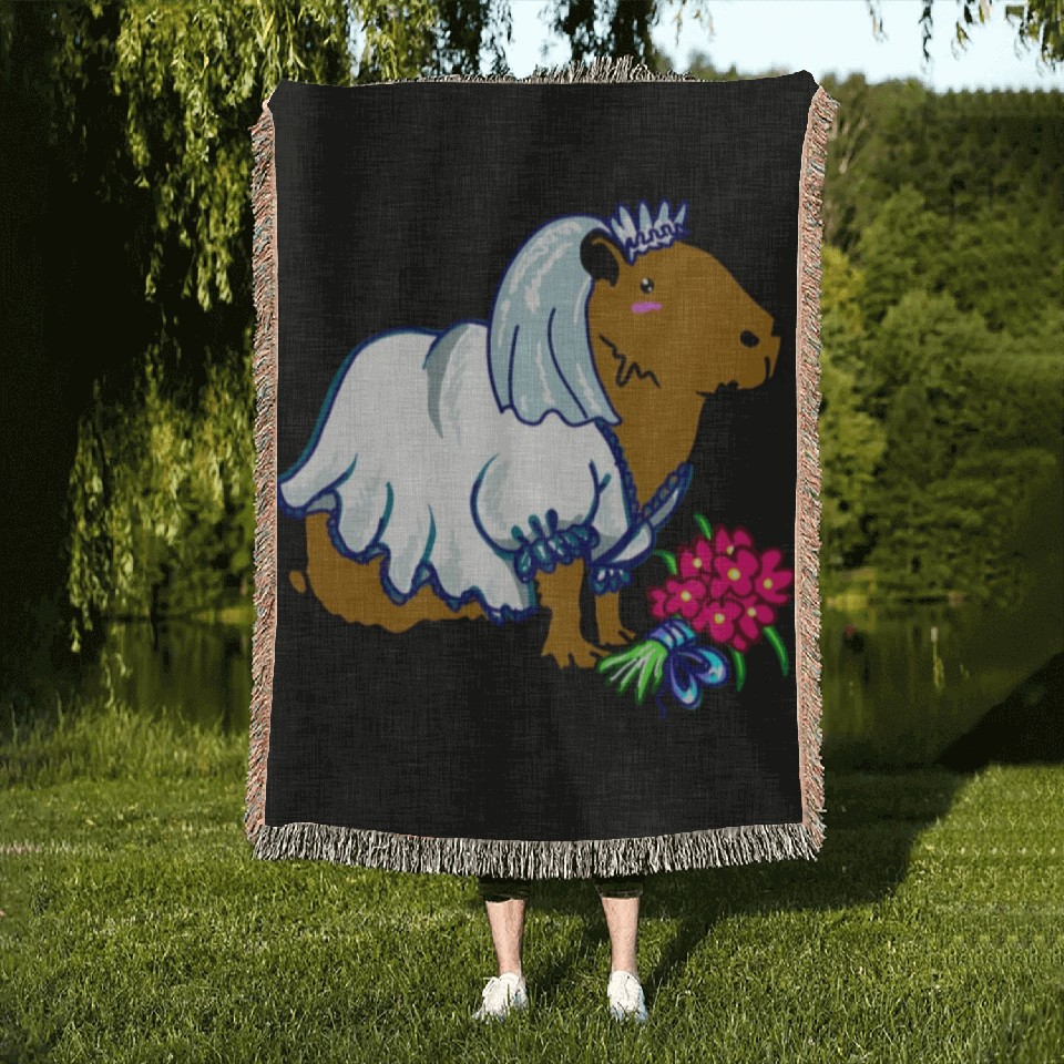 Shop for impressive Capybara Bride In A Wedding Dress Illustration Woven Blankets or see more Woven Blankets products right now on Printblur to enjoy your happiness!