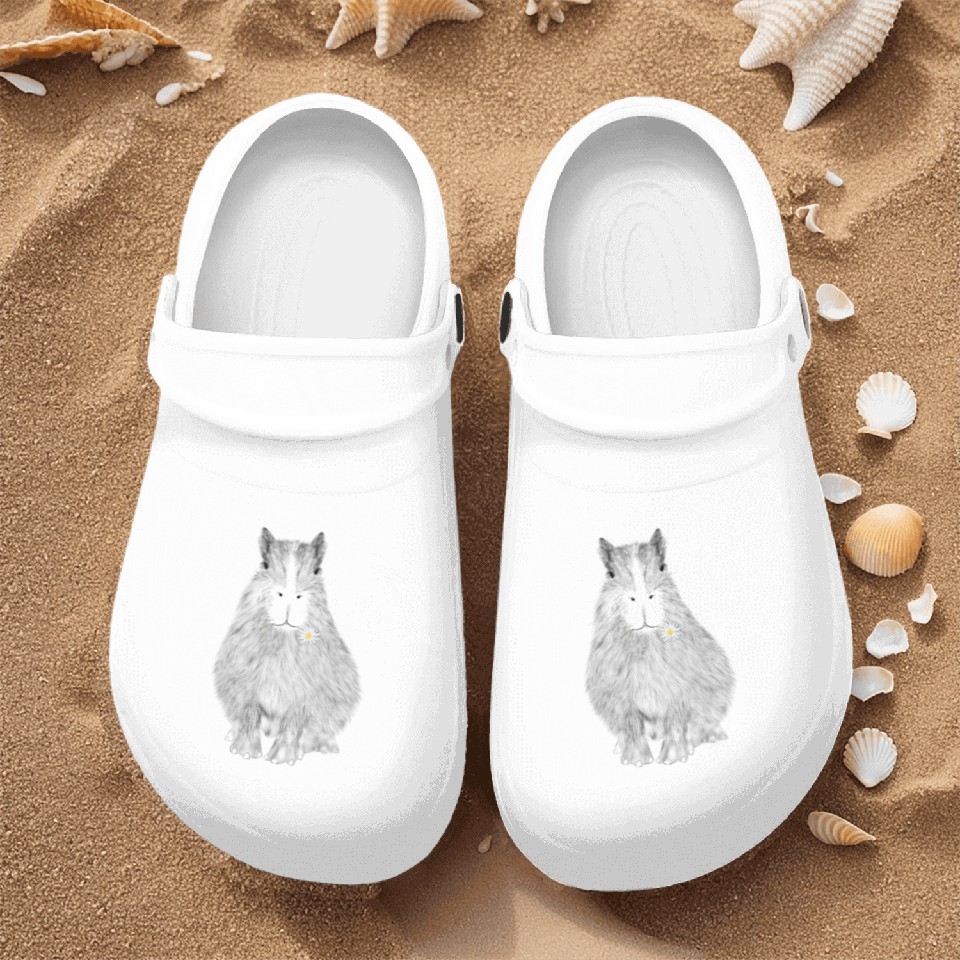 The product unique design you searched for is Capybara Daisy Capybara Cute Lover Cute Animal Nurse Clogs For Men WHITE belong theme Nurse Clogs at Printblur
