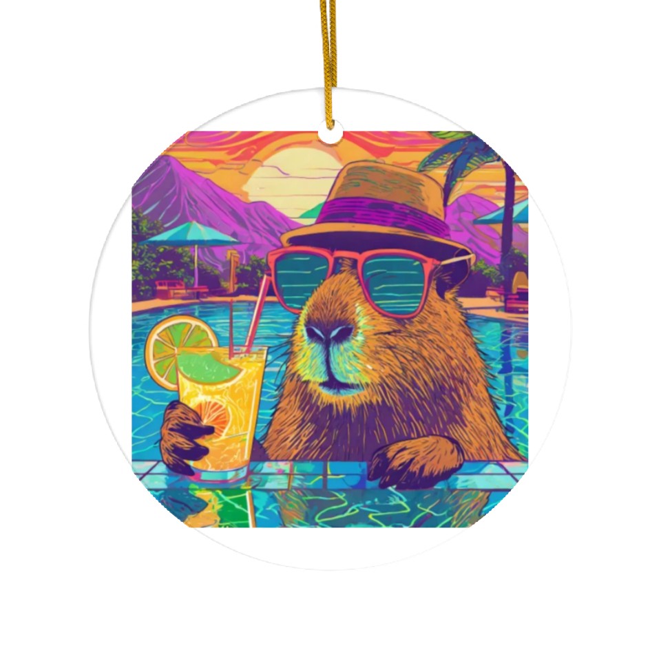 Buy stunning Capybara on vacation sipping on Lemonade Ceramic Ornaments or see more Ceramic Ornaments products at Printblur right now to receive many amazing discounts!