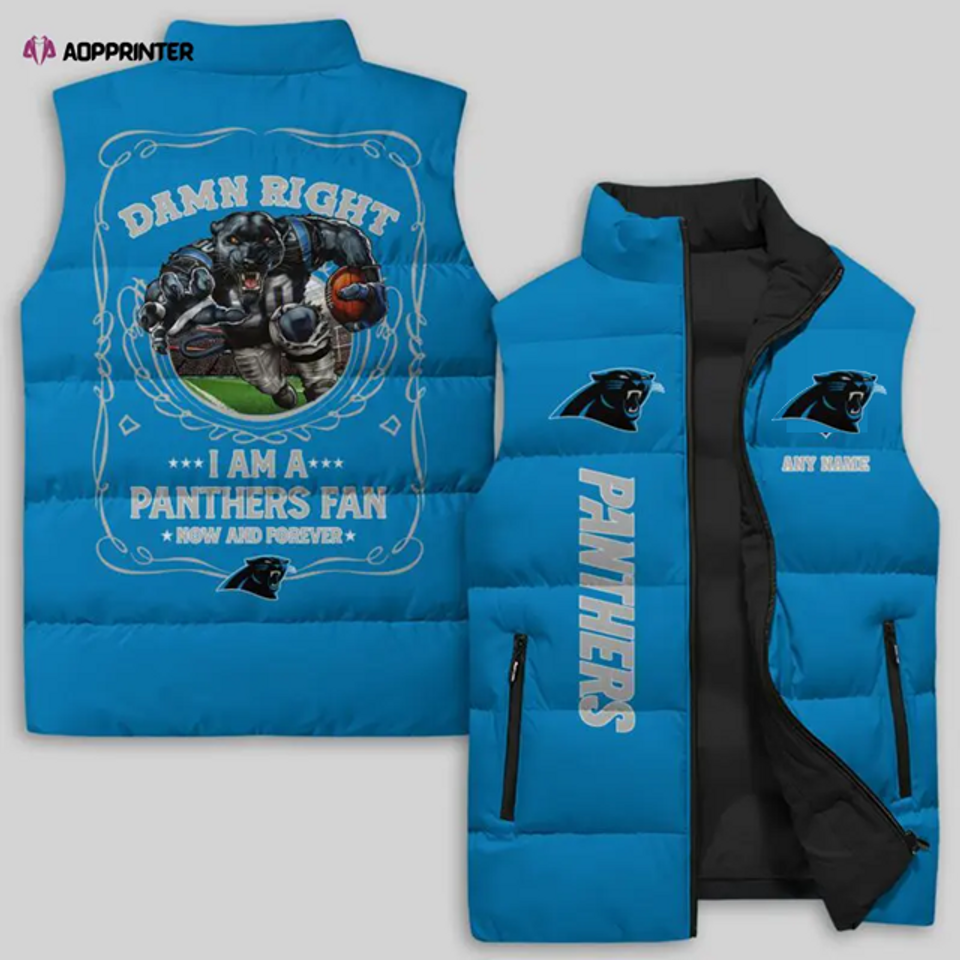 You are viewing one of the trendiest products Carolina Panthers Sleeveless Puffer Jacket Custom For Fans Gifts For Unisex belong theme Sleeveless Jackets at Printblur