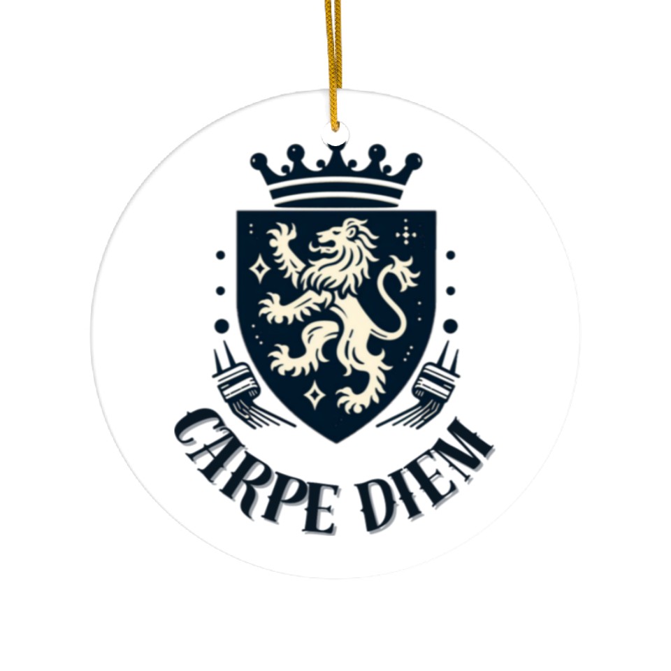 Shop for impressive Carpe Diem - Elegant Heraldic Crest With Lion and Ceramic Ornaments or see more Ceramic Ornaments products right now on Printblur to enjoy your happiness!