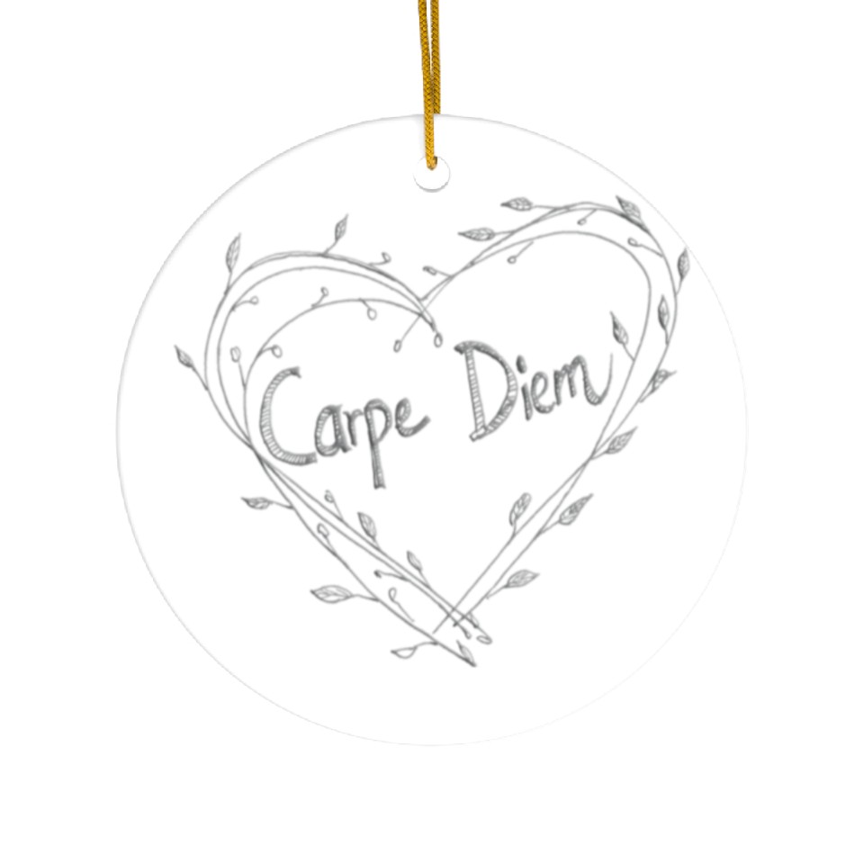 You're searching for a one-of-a-kind product Carpe Diem Quote Heart Twigs Ceramic Ornaments For WHITE belong theme Ceramic Ornaments at Printblur