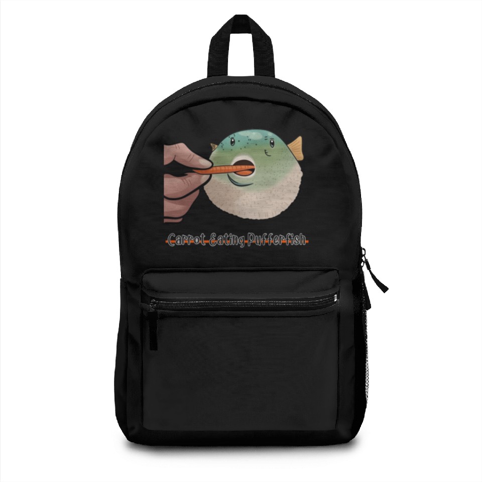 The product unique design you searched for is Carrot Eating Pufferfish Meme Backpacks For Black belong theme Backpacks at Printblur