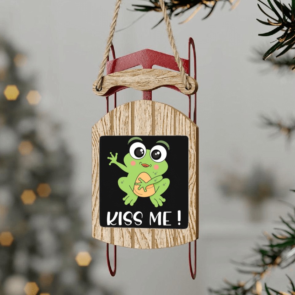 Cartoon Kids Frog I Kiss Me Frog Motif 1 Sled Ornaments
