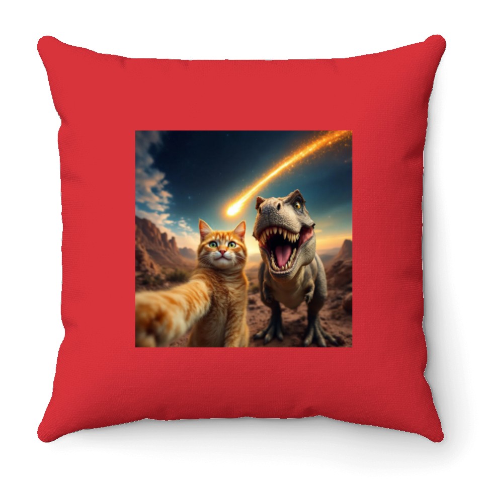You are seeing a unique and impressive product Cat and Dinosaur Meteor Selfie Meme Funny Throw Pillows For Cover Only Red belong theme Throw Pillows at Printblur