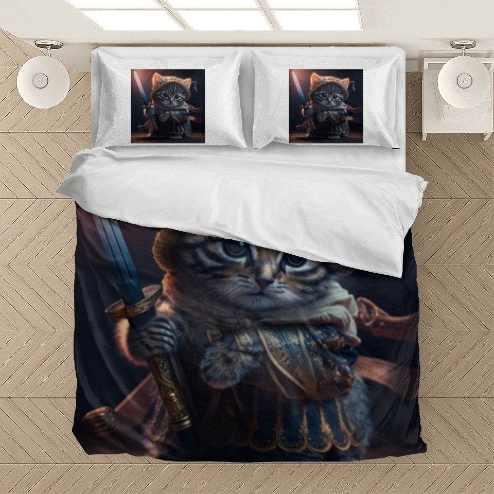You are seeing a unique and impressive product Cat as a warrior holding a sword Bedding Sets For WHITE belong theme Bedding Sets at Printblur