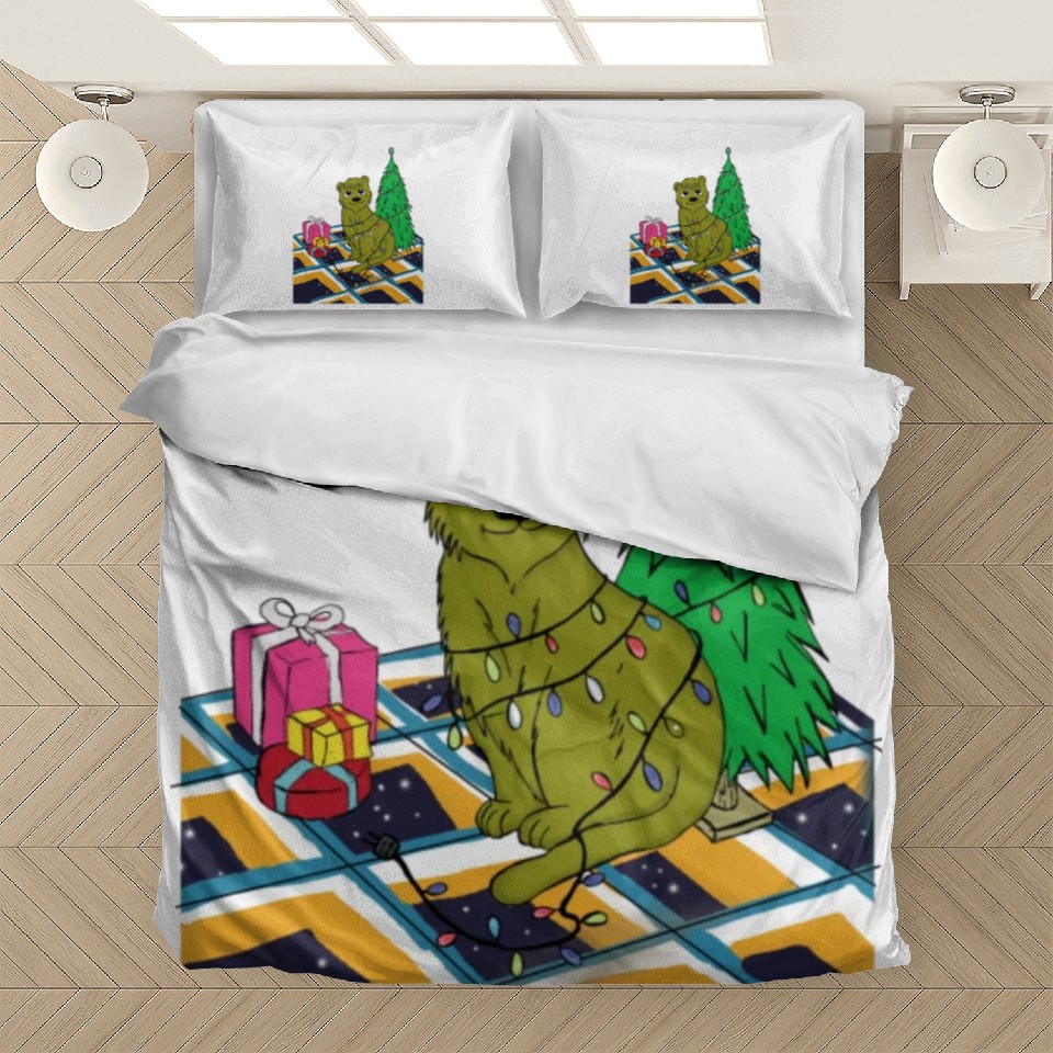 Own fascinating Cat Christmas Light Bedding Sets Funny Cat Lover or see more Bedding Sets products now from Printblur shop to enjoy your shopping time!