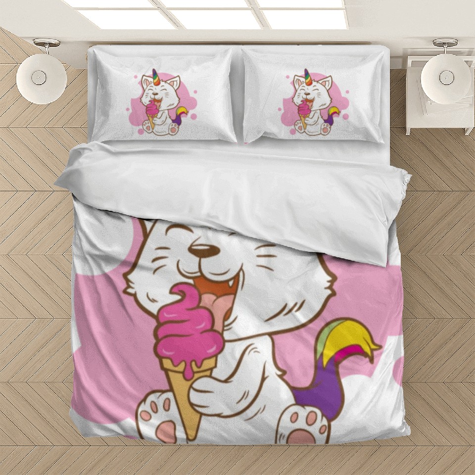 Shop for impressive Cat Eating Ice Cream Rainbow Cat Lady Gift Idea Bedding Sets or see more Bedding Sets products right now on Printblur to enjoy your happiness!