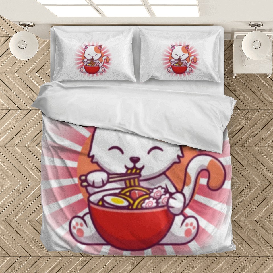 You're searching for a one-of-a-kind product Cat Eating Ramen Bedding Sets For WHITE belong theme Bedding Sets at Printblur
