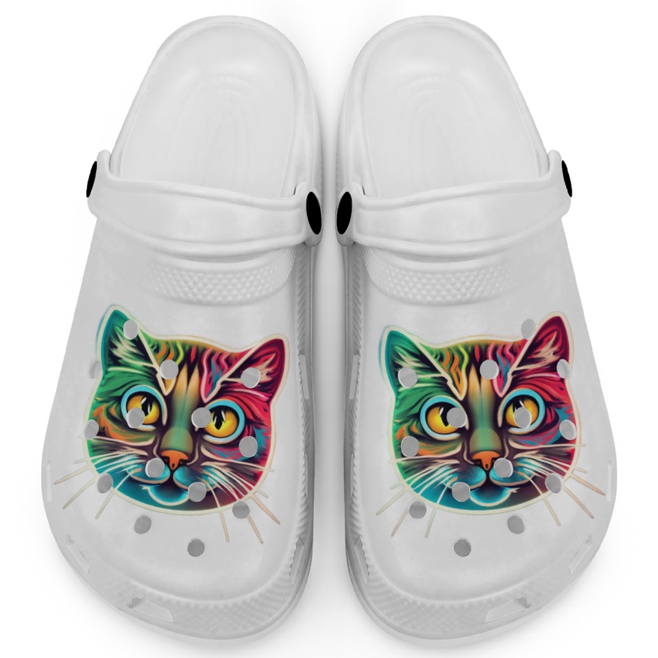 Shop for attractive cat face neon design Clogs or see more Clogs products on https://printblur.com right now!