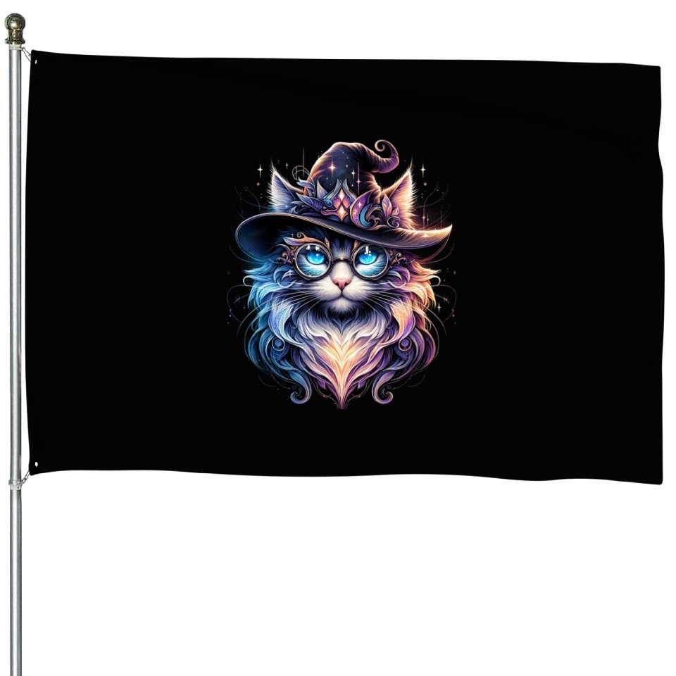 The product unique design you searched for is Cat Fantasy "Enchanted Wizard Cat" House Flags For Black belong theme House Flags at Printblur