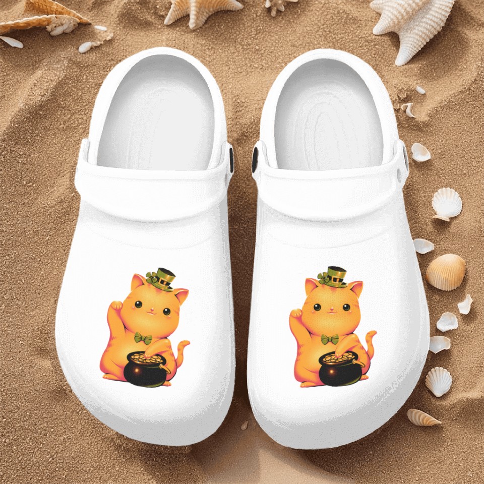 You're searching for a one-of-a-kind product cat Irish Lucky Cat Nurse Clogs For Men WHITE belong theme Nurse Clogs at Printblur